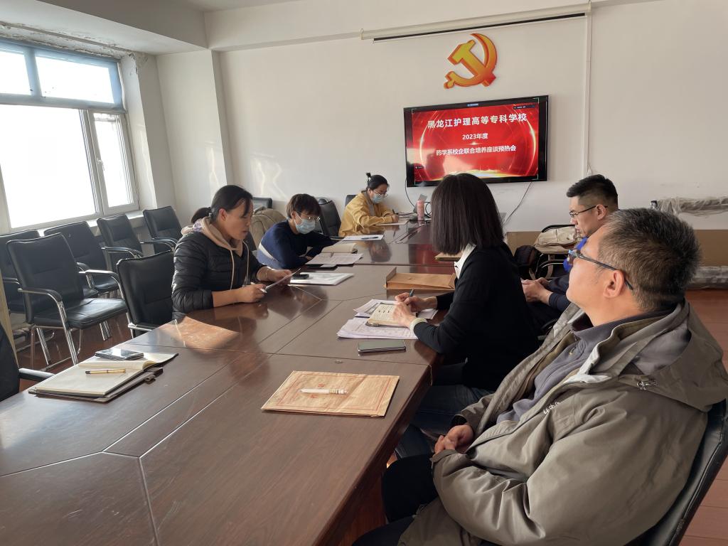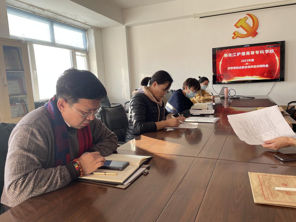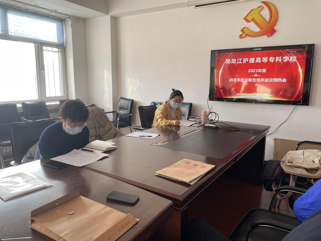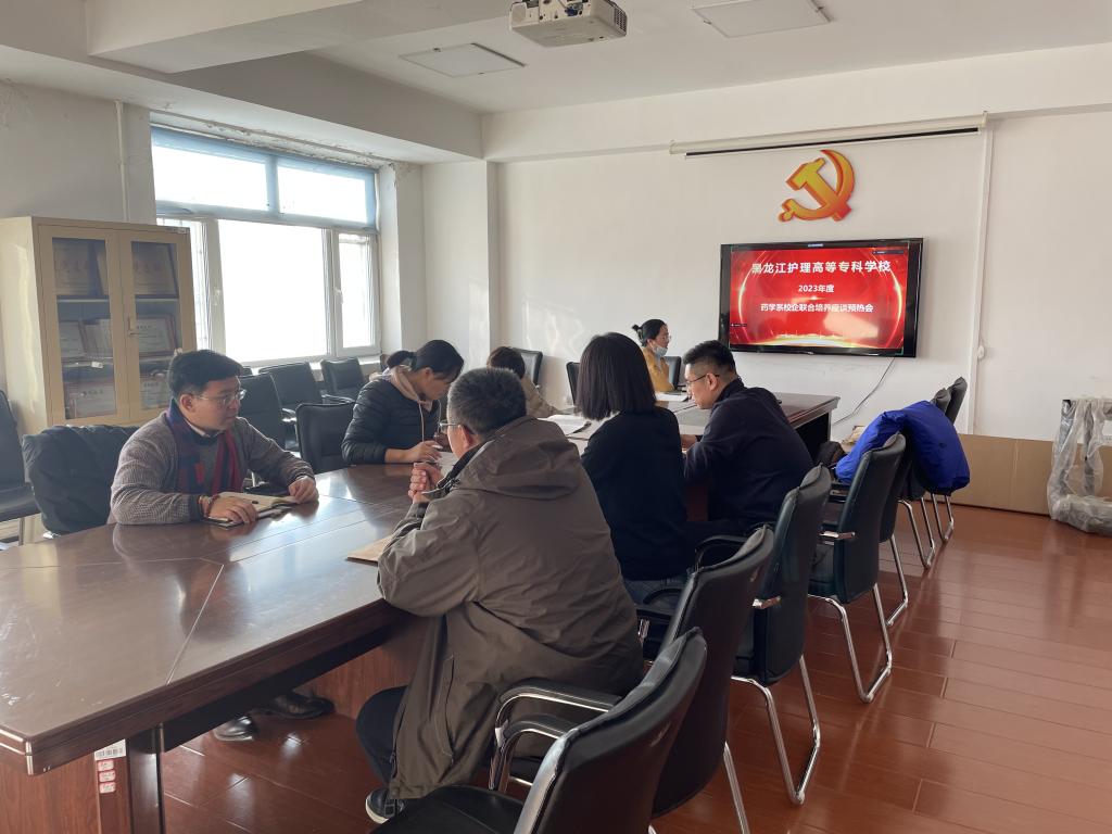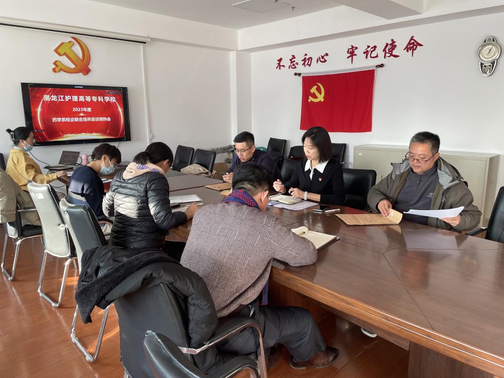 为深入贯彻落实黑龙江护理高等专科学校“十四五”发展规划重点任务,寻求校企合作共赢、共谋发展的良好局面,2023年12月19日下午,药学系召开校企合作联合培养座谈预热会。此次座谈预热会采取线上线下相结合的方式,受邀企业线上参会。此次参会的企业方是优选的合作企业代表包括省内外的多家生产、物流和药品连锁零售企业。会议由药学系负责人贾琦主持,药学系党支部负责人杨宏远,教师邵靖宇、白冰、张春华、杨阳、张冠共同参加。